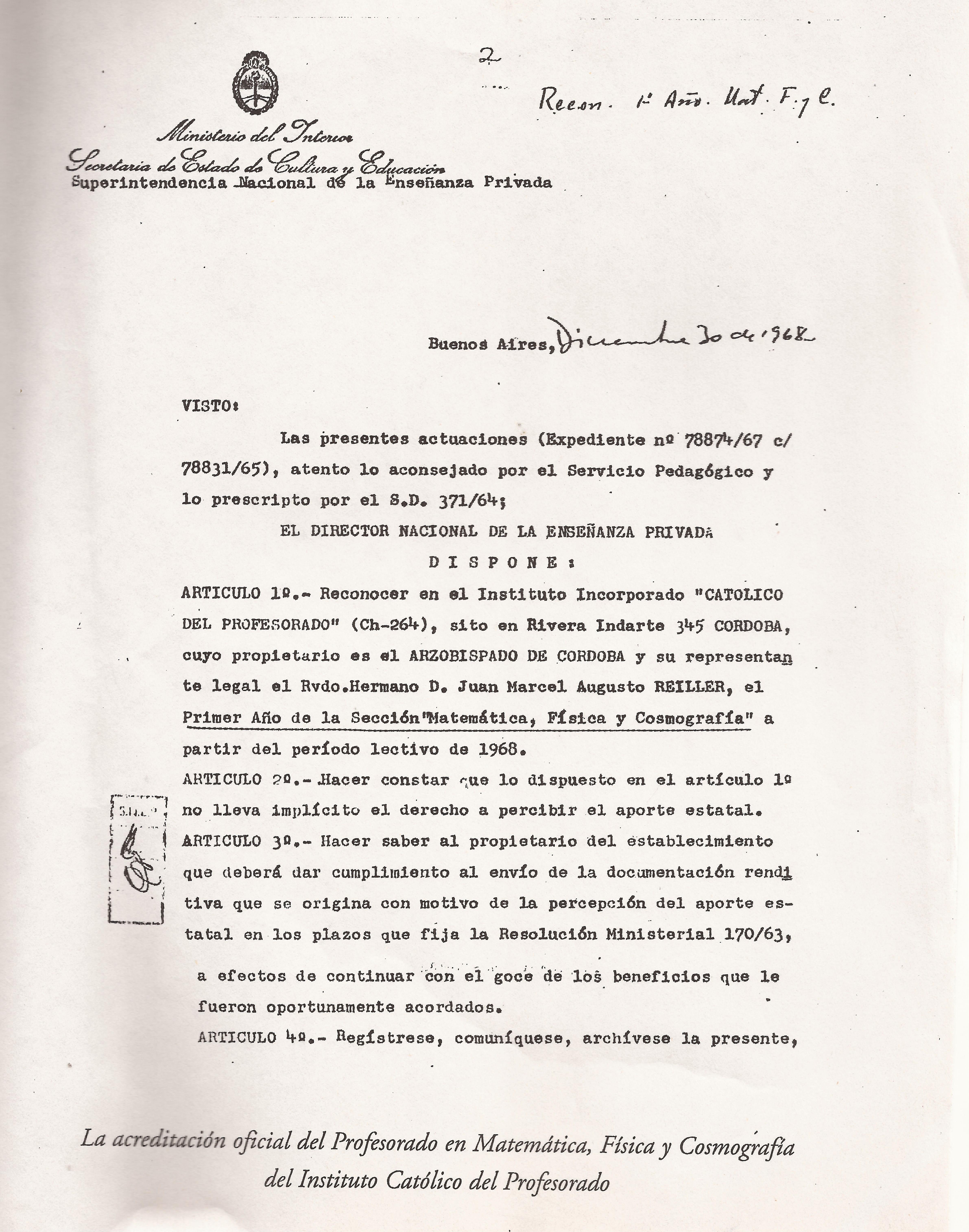 Acta de reconocimiento oficial